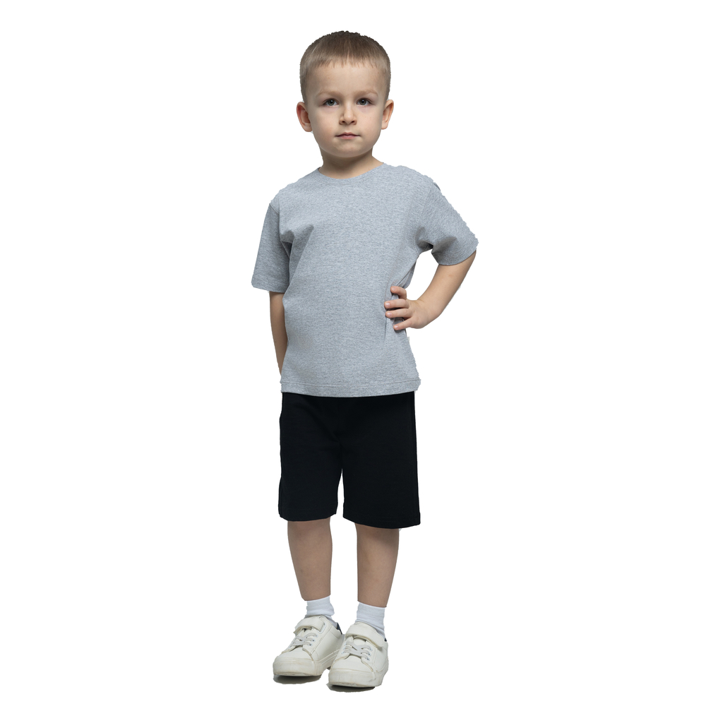 Составит полный комплект спортивной формы в сочетании с бейсболкой и детскими шортами.
