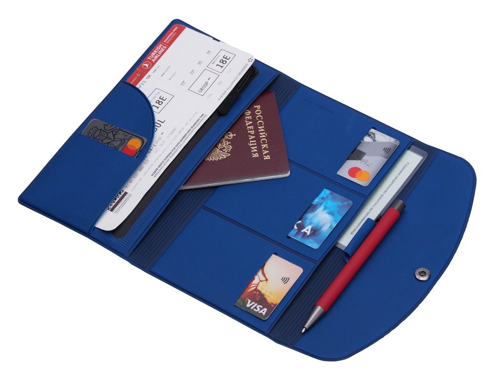 - Удобные отделения для паспорта, билетов, карт и страхового полиса.
