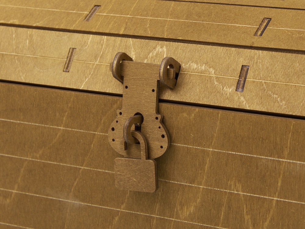 4. Деревянный сундук с изящным замочком превращает вручение подарка в особый ритуал. Дополнительное брендирование шильдом спектрум делает презент эксклюзивным и памятным.