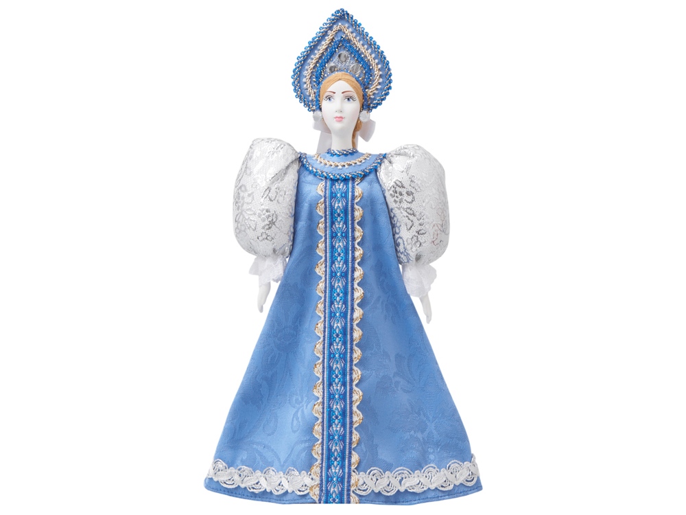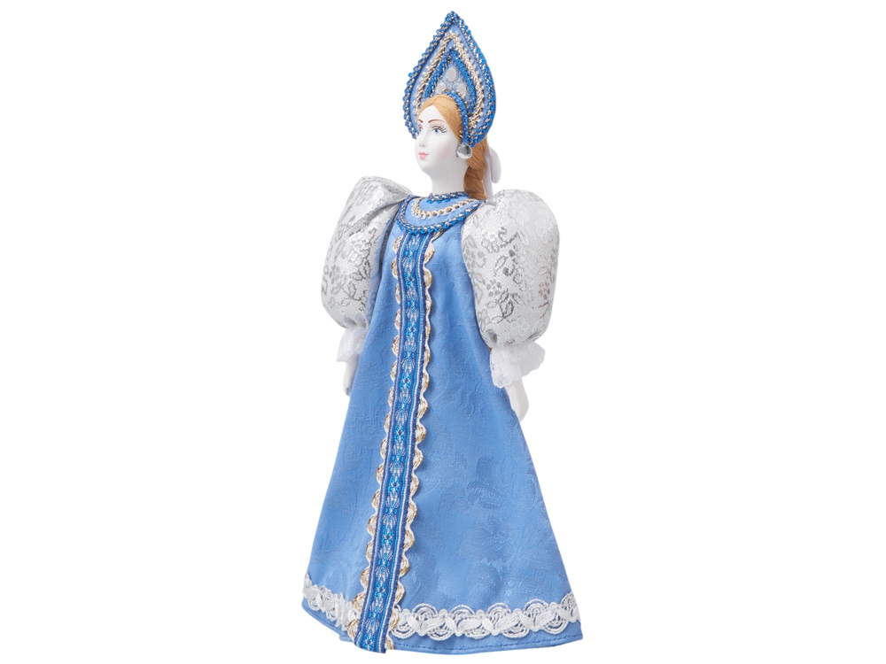 - Фарфоровая кукла в народном костюме ручной работы: расписной сарафан и кокошник с традиционной вышивкой воссоздают образ русской красавицы.