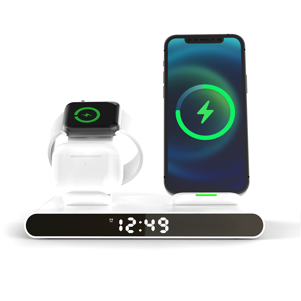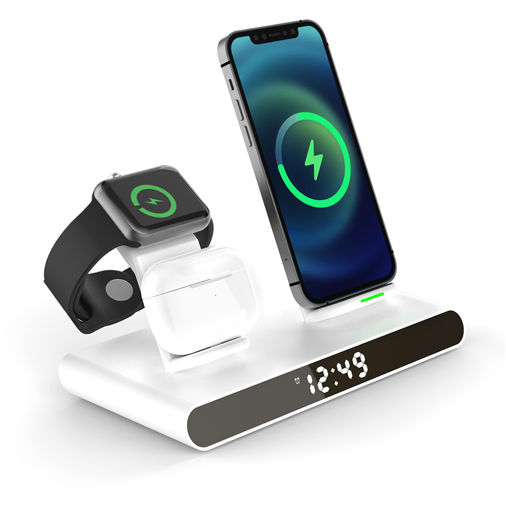 Часы электронные Abbatt мультифункциональные с беспроводной зарядкой мощностью 10W. Особенность этих электронных часов заключается в том, что они выполянют функцию не только часов и будильника, а еще с их помощью можно заряжать свои гаджеты. Удобство беспроводной зарядки говорит само за себя - очень комфортно заряжать смартфон, часы и наушники, просто положив их на зарядную станцию, не подключая при этом к ним никаких кабелей. Также есть возможность быстрой зарядки Qi. При беспроводной зарядке устройство меньше подвержено перепадам в сети, чем при подключении к розетке, тем самым увеличивается срок службы аккумулятора. Благодаря интерфейсу Type-C (шнур идёт в комплекте 1м) ваши гаджеты будут заряжаться более эффективно, а главное - одновременно. Вы можете смотреть фильмы, слушать музыку, звонить или отправлять сообщения во время всего процесса зарядки. Входы: 9V/2A 12/2A. Выходы: Беспроводной 10W / 7.5W / 5W / USB 5V / 0.8-1A / Airpod 3W / Apple watch 2.5W. Совместимость с Apple 8 и выше.