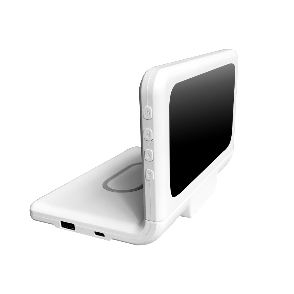 Многофункциональные электронные часы Konner с угловой формой,выдержанным дизайном LED экрана и удобной площадкой для беспроводной зарядки мощностью 10W. Функции: Время / Температура / Будильник / Беспроводная зарядка Qi.