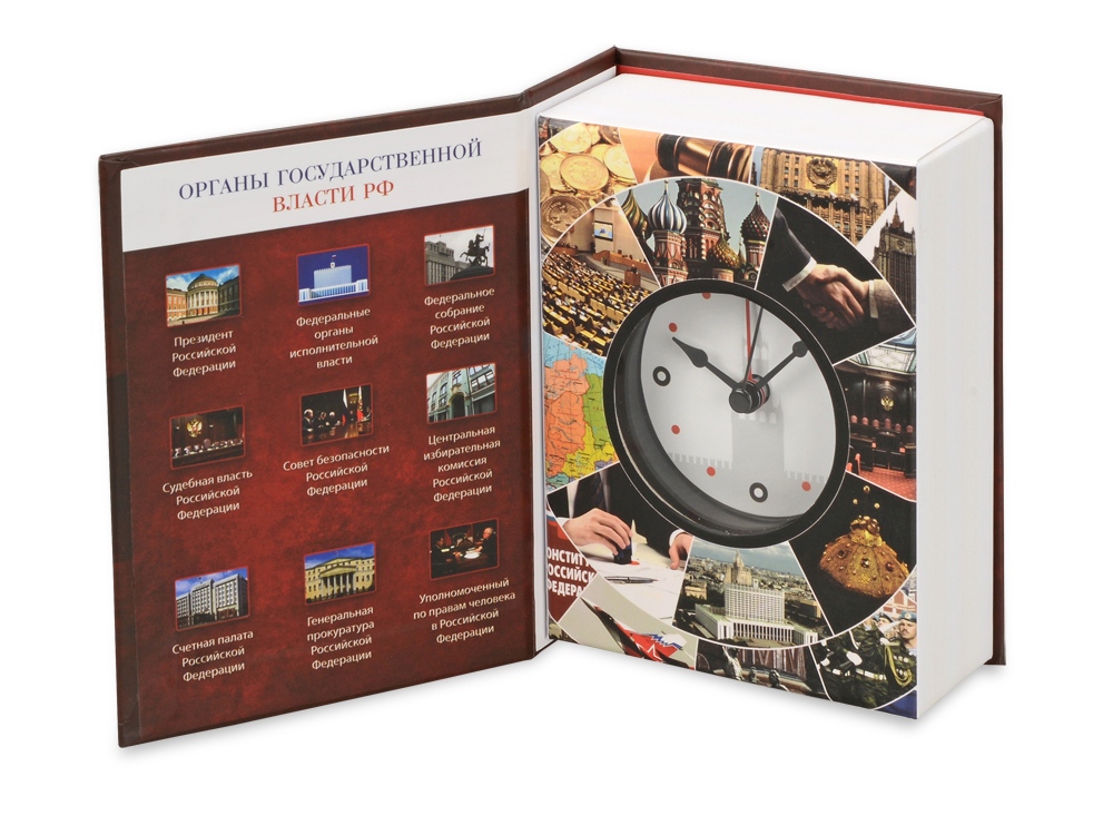 Часы в виде книги Железные дороги России - элегантный аксессуар, который прекрасно дополнит дизайн практически любого офиса. Подходят как для строгого, так и для свободного стиля. Они будут отличным подарком для всех, кто связан с железнодорожными перевозками.
