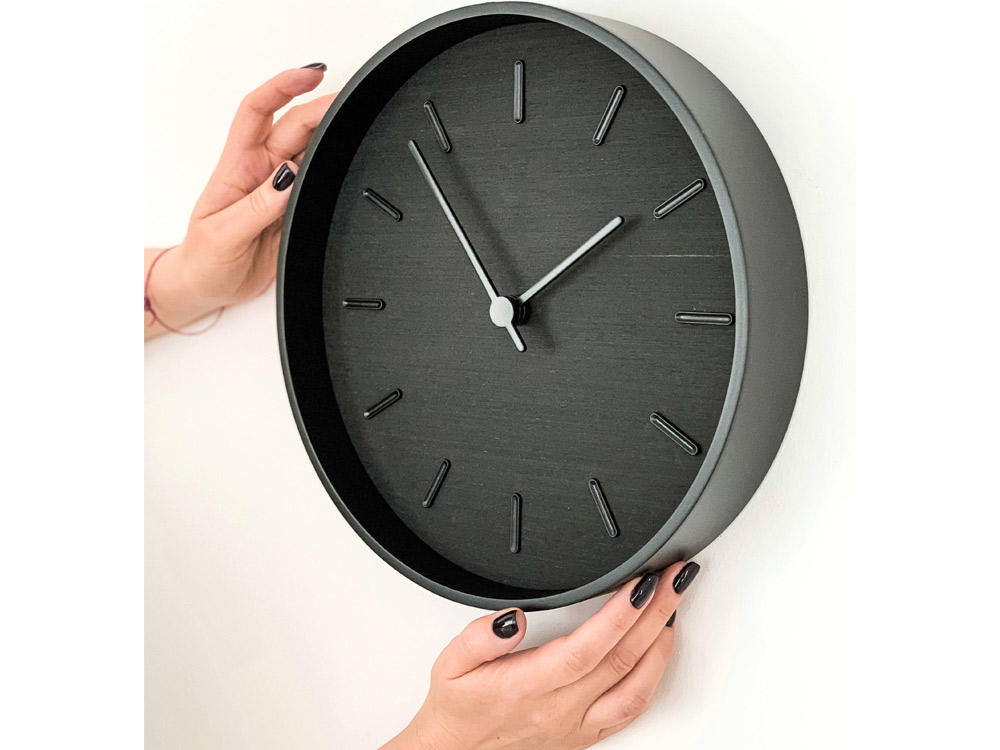 Beam - это современные настенные часы из натурального шпона с часовыми метками в черном цвете. Данную модель отличает стильный total black в деревянном исполнении: черный циферблат сделан из шпона венге и дополнен черными деталями: обод, стрелки и часовые метки.