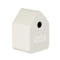 Небольшие настольные часы из МДФ со встроенным будильником имитирующим кукушку (звучит также каждый час) и белым светодиодным дисплеем отображающим температуру. Звук автоматически отключается с 22:00 до 06:00. Интервал повтора будильника 5 минут