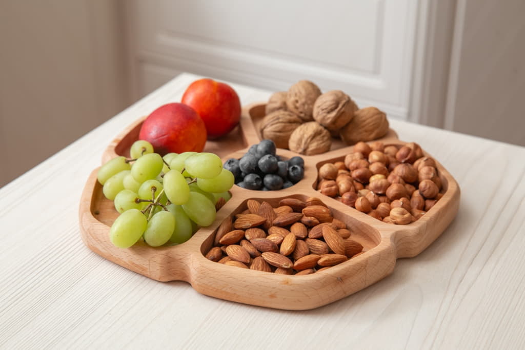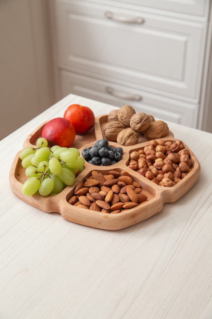Менажница в форме цветка на 5 ячеек D=23см, выполнен из премиум материала бук.