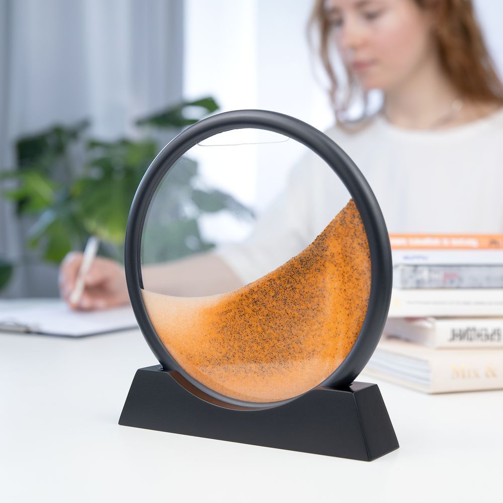 Песочный антистресс — это живая картина, в которой струящиеся в воде цветные песчинки создают неповторимые пейзажи. Наблюдение за невероятными образами позволит расслабиться и отвлечься от дел, успокоив глаза и мысли.