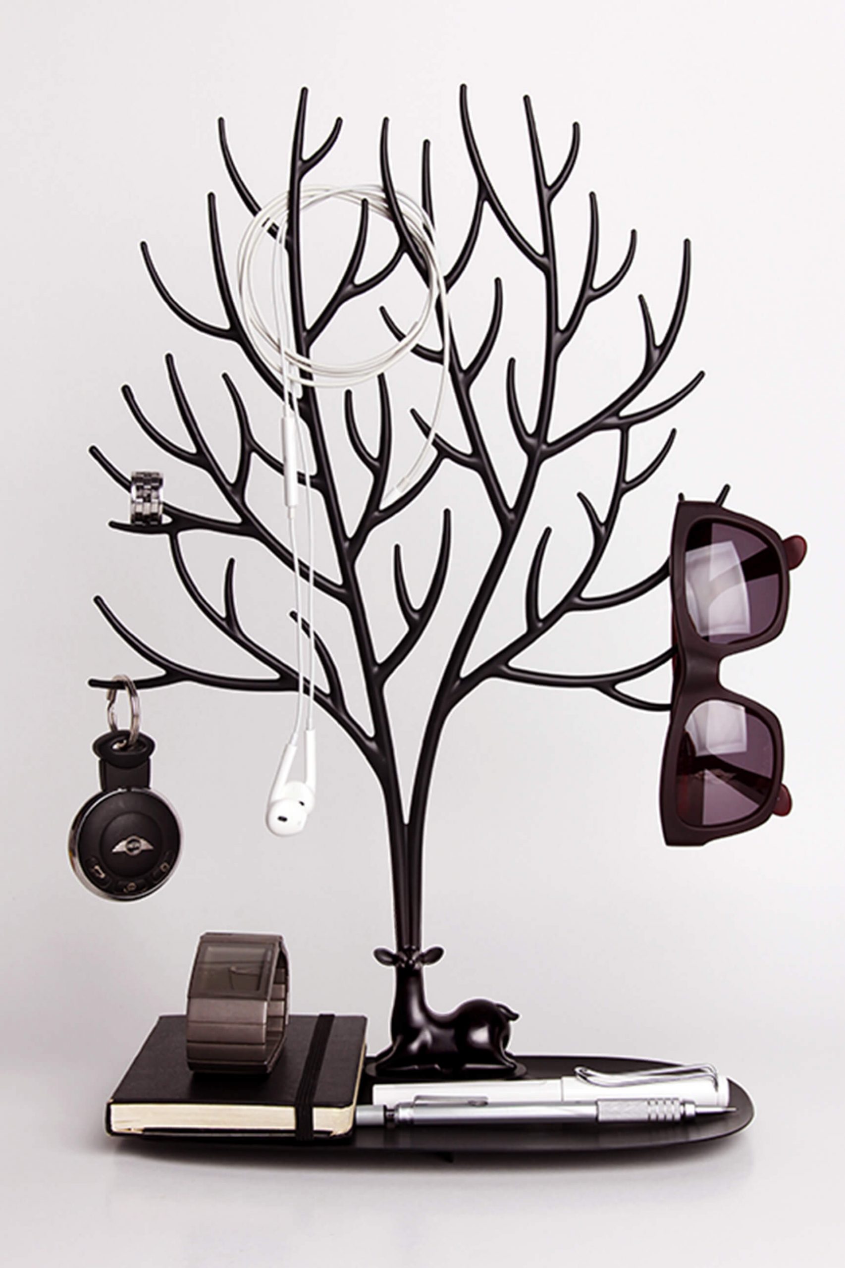 Любой девочке, девушке или женщине известны такие неприятности, как сережка без пары, как цепочка, которая спуталась или браслет, который неизвестно где исчез, хотя "я его положила вот здесь":) Порядок возможен не только в сказке! Дизайнеры тайской дизайн-студии Qualy специально для Вас создали этого сказочного оленя с вот такими фантастическими рогами, который привнесет в Ваш дом только положительные эмоции! Эта яркая подставка подойдет для хранения любых мелочей: от ювелирных украшений и косметики до браслетов, кошельков, телефонов и ключей... Предметы всегда будут на виду ― их удобно хранить и легко подбирать к любому наряду. Основные характеристики "My Deer Tray":