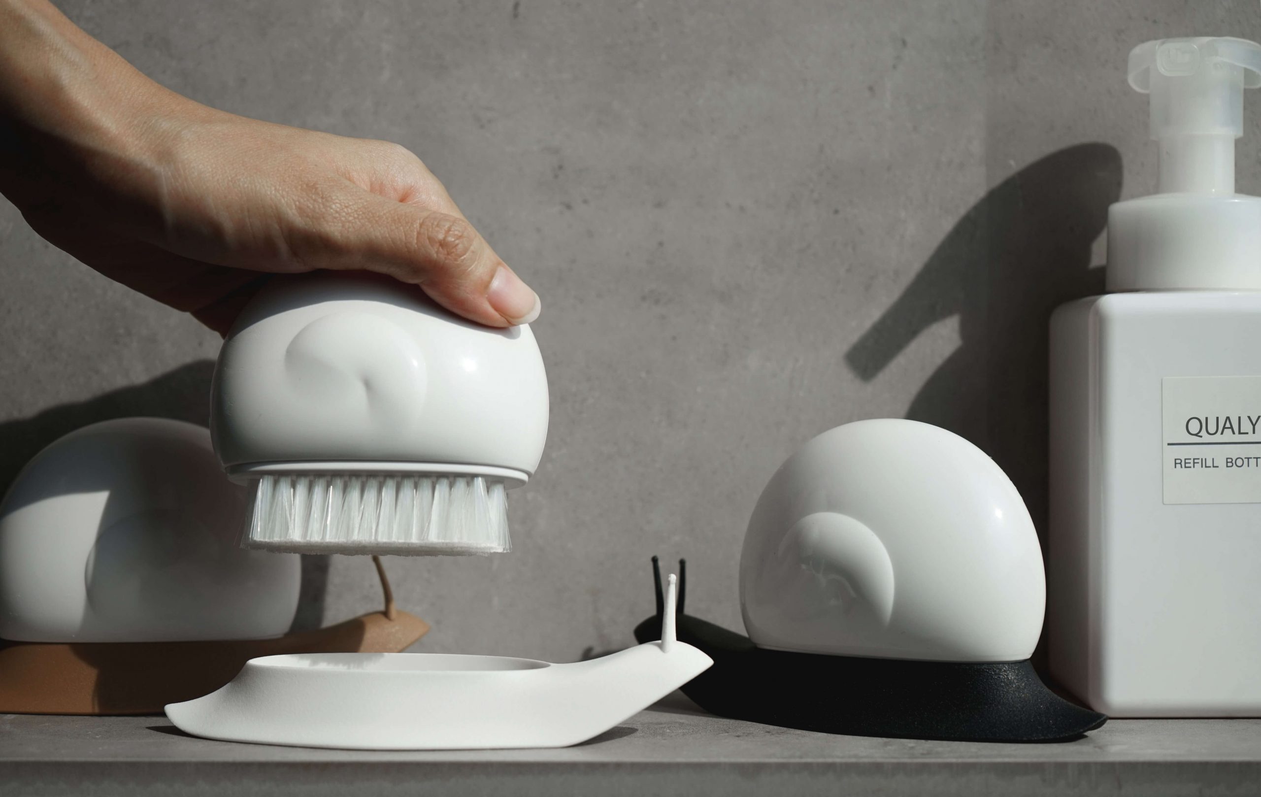 QUALY Eschi - ручная щётка. Пластиковая ручная щётка с подставкой. Размер: 13,7 х 5 х 7,2 см.