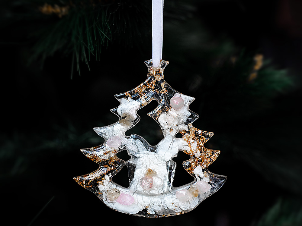 ювелирная смола, розовый кварц, горный хрусталь, цитрин, золотая поталь