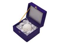 Игрушка упакована в изысканный подарочный футляр, обитый синим бархатом, что подчеркивает её ценность и делает готовым презентом для коллег и партнеров.