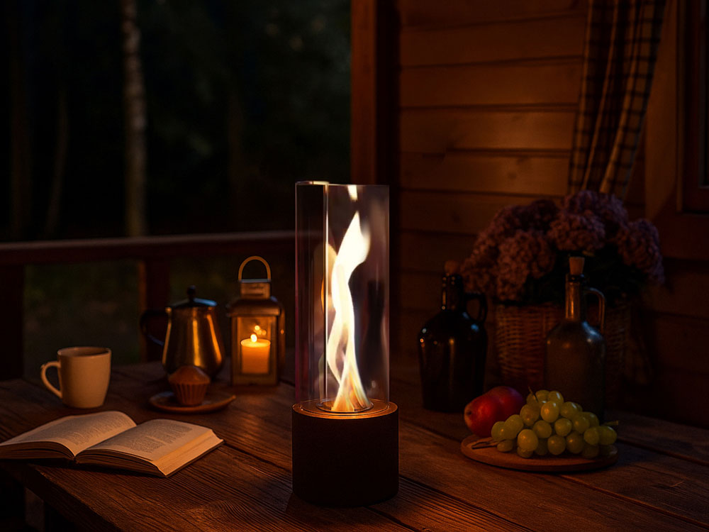 Биокамин Dance of flame — это не просто источник живого огня, а настоящий декоративный перформанс. Его главная особенность — тройная конструкция стеклянных панелей. Они расположены так, что между ними свободно гуляет воздух, создавая внутри завораживающий эффект: пламя не просто горит — оно кружится, словно танцует вальс.