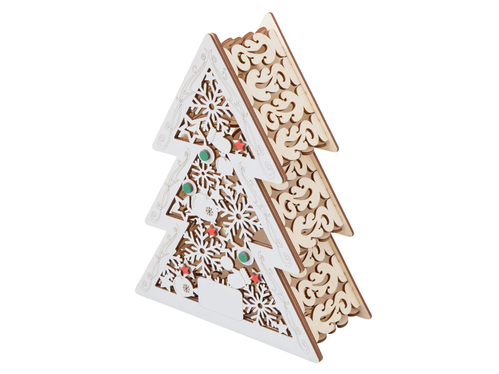 Шкатулка из натуральной березовой фанеры в форме ёлки. Минималистичный дизайн и качественный материал делают её практичным и эстетичным аксессуаром.