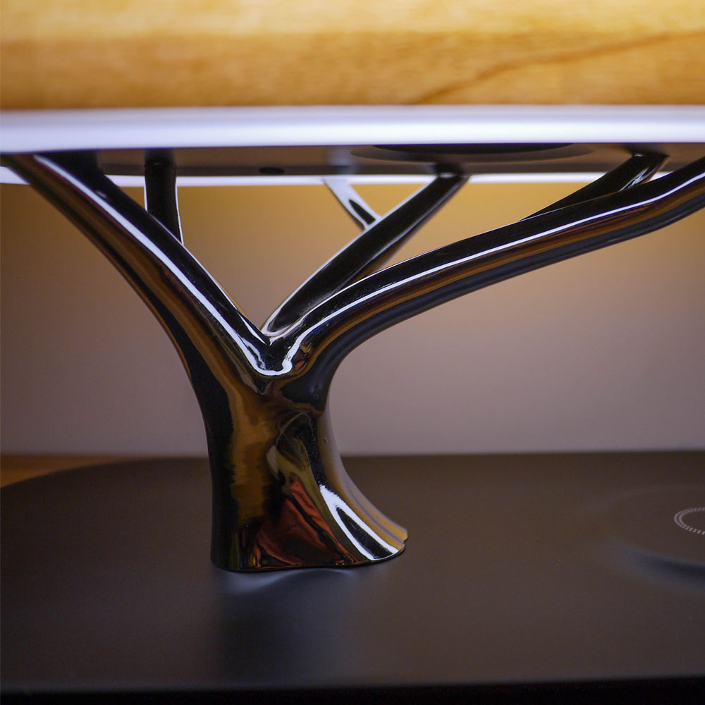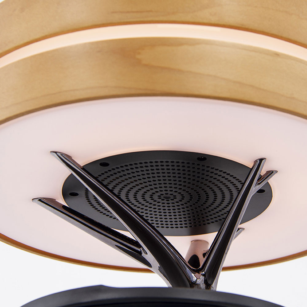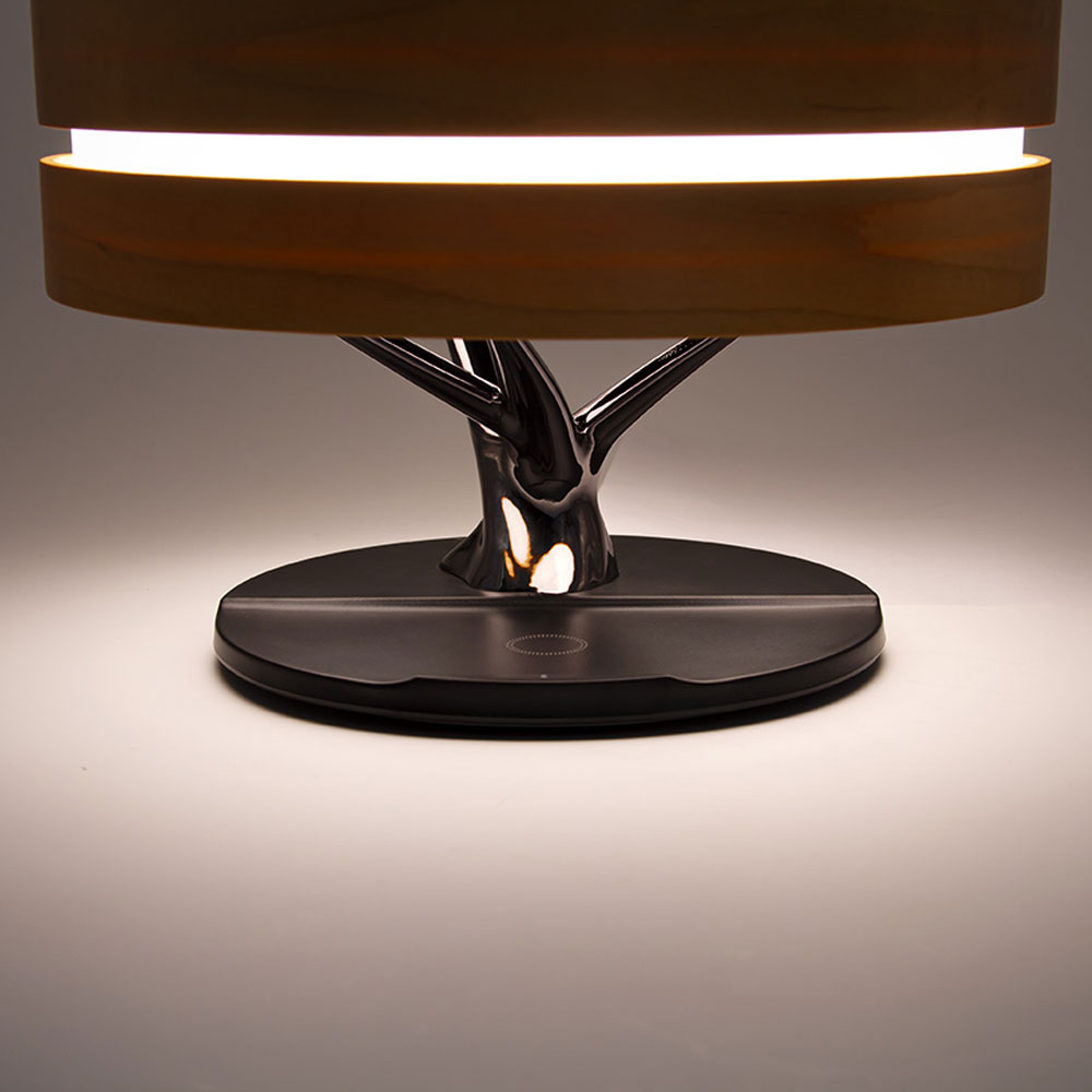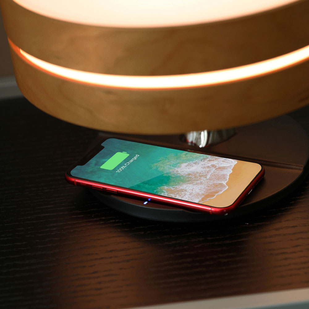 Оригинальная настольная лампа Aronda для современного офиса или стильной квартиры. Дизайнерское сочетание натурального дерева, полированного металла создает уникальный стиль. А многофункциональность устройства позволяет использовать его не только как светильник. Можно слушать музыку или заряжать мобильный телефон при помощи беспроводной зарядки мощностью 10W функции Qi . Тип лампы LED, цветовая температура 2800-3000К, мощность лампы 10W. Питание: 100~240V 50-60Hz.Беспроводная зарядка 5V/2A. Мощность колонки 5Ω/5W*1. Bluetooth MVSILICON 3.0. В комплекте адаптер USB C-type и инструкция.
