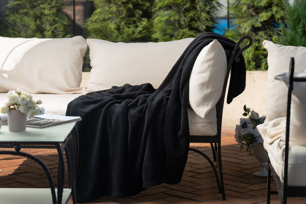Плед Plush пригодится также летними вечерами на открытых кафе и верандах.