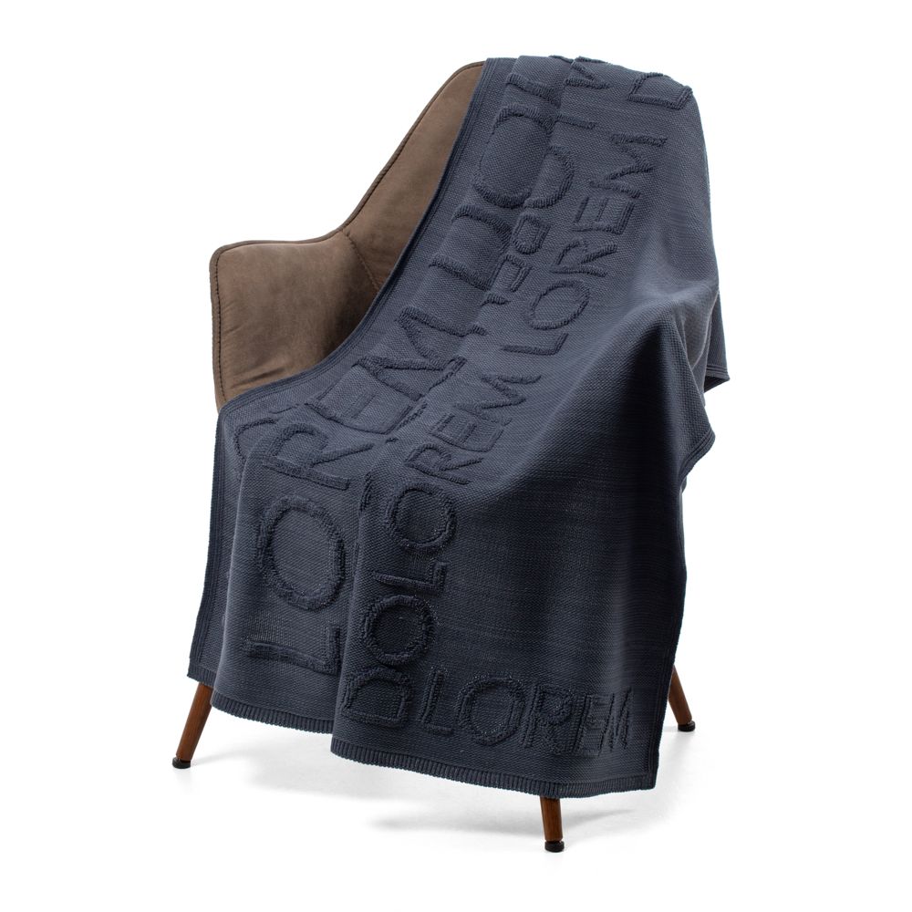 Плед с вывязанным логотипом и рельефным узором в фирменном цвете вашей компании.