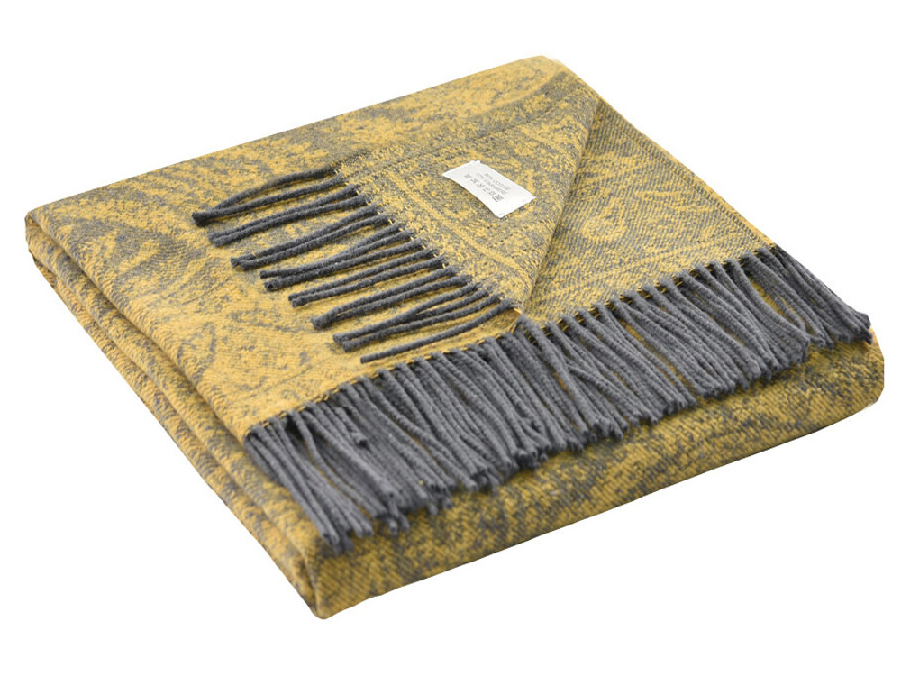 • Плед c узором украшен бахромой, элегантный дизайн органично впишется в интерьер и станет стильным украшением вашего дома. Постелите плед на диван или на кровать, возьмите с собой на дачу или используйте плед-покрывало в кресле-качалке.