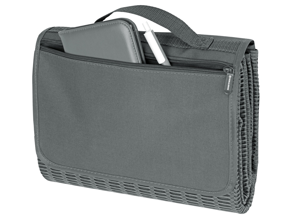 С нашим пледом любой поход или пикник на природе станет комфортным удовольствием. Наружный слой имеет мягкую сетчатую текстуру и выполнен по инновационной технологии 3D Air Mesh Sandwich, делающей поверхность пледа дышащей, что особенно важно во время отдыха на природе. Непромокаемая подкладка гарантирует удобство при использовании на влажной поверхности. Карман на молнии специально разработан для гаджетов и других мелочей. Ручка для переноски обеспечивает дополнительный комфорт при транспортировке пледа.