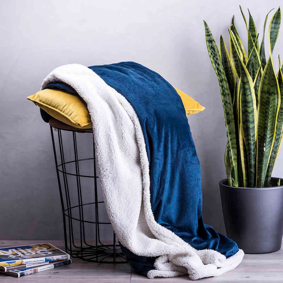 Элегантный плед из кораллового флиса и шерпы, плотностью 380 г / м2. Открытка для персонализации, лента.