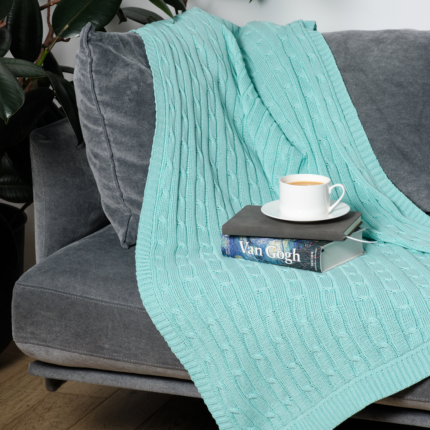 Плед Fado с фактурной вязкой «косы» станет вашим незаменимым спутником как дома, так и на природе. Берите его с собой в путешествия – лёгкий и компактный, он не займёт много места в багаже.
