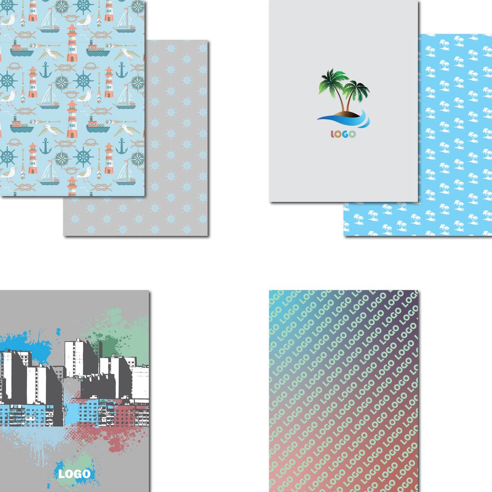 - Лицевая сторона может быть с индивидуальным макетом, оборотная — только с паттерном (базовым элементом орнамента, частью узора/логотипом, повторяющимся многократно в художественном оформлении ткани).