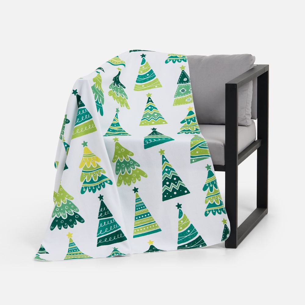 В новогодние праздники царит яркая и радостная кутерьма: любимые всеми елки приобретают всевозможные формы и примеряют самые разные облачения! Примерно как веселые и причудливые елочки, изображенные на мягком флисовом пледе Imaginario. Его необычная стилистика и яркие праздничные цвета подарят новогоднее настроение и заряд позитива на долгое время!
