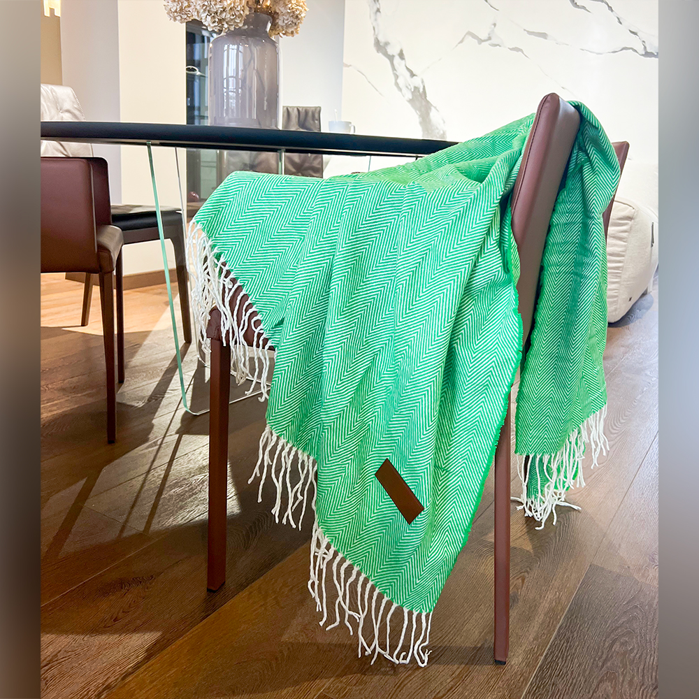Плед SAMUM изготовлен из высококачественной акриловой пряжи, что позовляет добиться мягкости и тепла как от натуральной шерсти. Благодаря составу плед легкий, хорошо сохраняет теплоизолирующие свойства и надолго радует внешним видом. Также гипоаллергенен, не накапливает статическое электричество и легко стирается. Плед имеет классический узор “елочка”, с бахромой по краям. Для нанесения логотипа предусмотрена нашивка из кожзама (8 x 4 см). Плед упакован в пластиковый пакет, сложен в виде рулона с текстильным держателем.