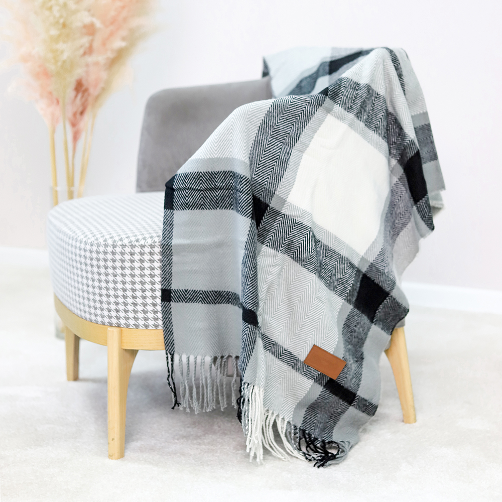 Плед GLAMA изготовлен из высококачественной акриловой пряжи, что позовляет добиться мягкости и тепла как от натуральной шерсти. Благодаря составу плед легкий, хорошо сохраняет теплоизолирующие свойства и надолго радует внешним видом. Также гипоаллергенен, не накапливает статическое электричество и легко стирается. Плед имеет классический узор “scotch”, с бахромой по краям. Для нанесения логотипа предусмотрена нашивка из кожзама (8x4 см). Плед упакован в пластиковый пакет, сложен в виде рулона с текстильным держателем.