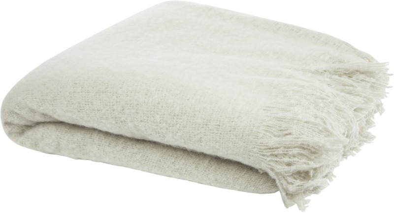 Ультрамягкое мохеровое одеяло из вторичного ПЭТ, обернутое лентой из вторичного ПЭТ 190T. Упаковано в полиэтиленовый пакет из переработанного материала. Длина бахромы: 10 см с каждой стороны. Размер ленты: 72 см x 4 см.