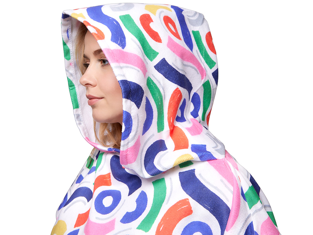 Полотенце с капюшоном - отличный вариант для отдыха на природе. Необычная конструкция модели позволяет одновременно высушить мокрые волосы и использовать полотенце в качестве накидки. Размер полотенца 78х109 см (без учёта капюшона) и материал из мягкого микроволкна также делает его подходящим для пляжа. Запечатка возможна с помощью сублимации - она передаёт все оттенки и градиенты и позволяет воспроизводить фотореалистичные принты. Для большего соответствия фирменному стилю доступны 8 цветов отделочной оверлочной нити, которые добавляют яркий и стильный акцент.
