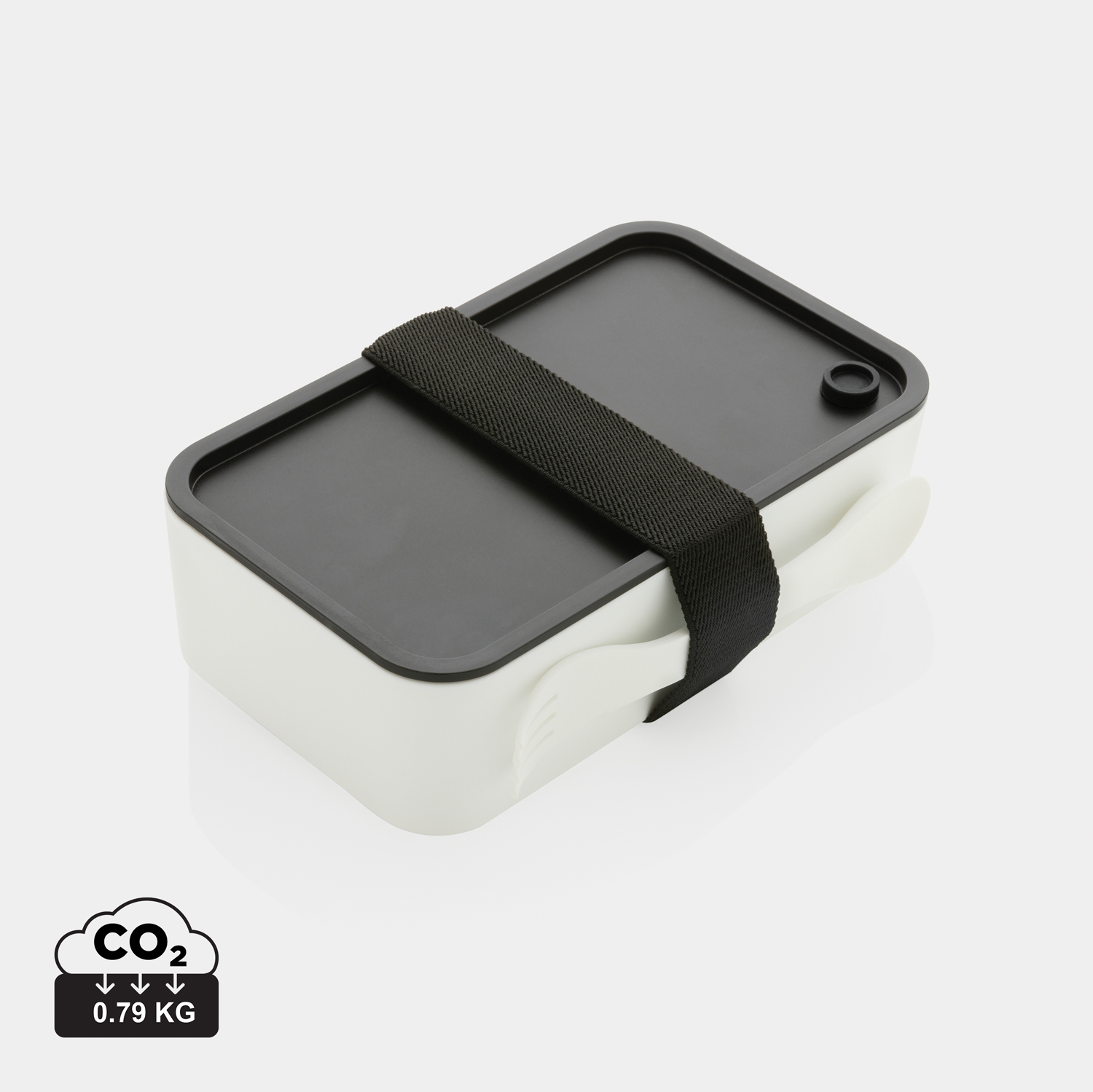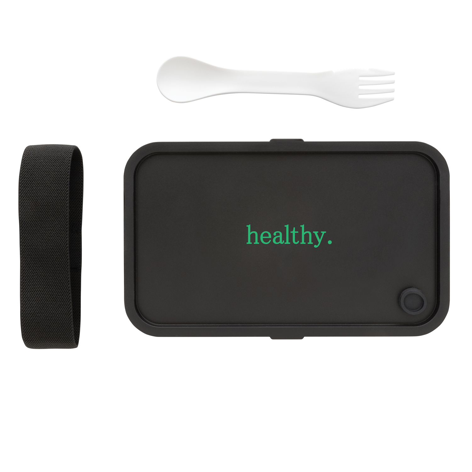 Стильный и прочный ланч-бокс просто создан для здоровых перекусов на работе и во время учебы! Достаточно вместительный, чтобы взять с собой и сэндвич, и салат. Изделие содержит 93% вторичного полипропилена, переработанного и сертифицированного по стандарту GRS. Можно использовать в посудомоечной машине и микроволновке. В комплекте со столовым прибором и эластичным ремешком. Объем 1,2 л.