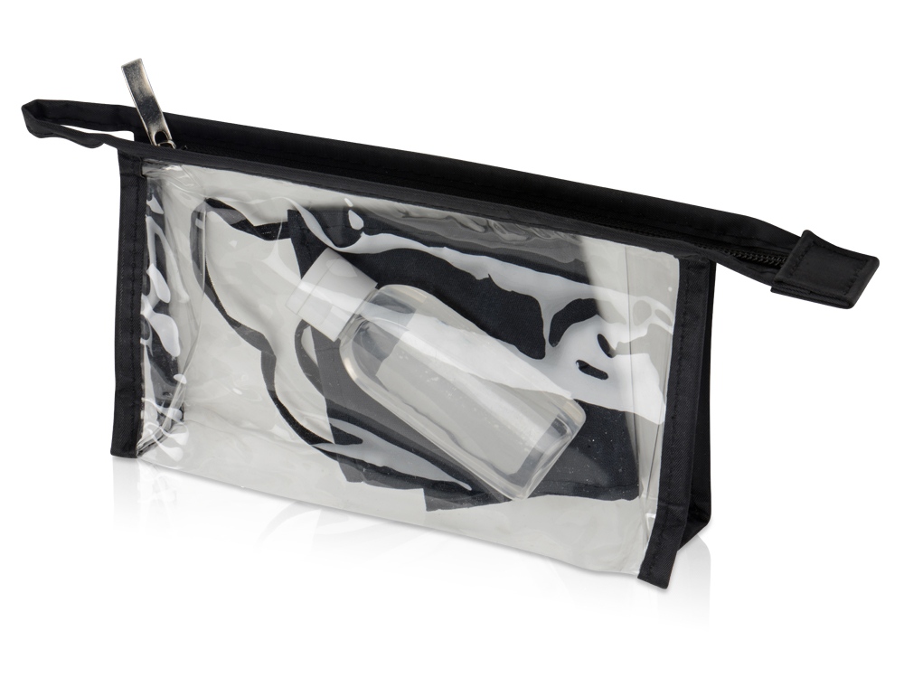 Самое необходимое всегда под рукой - в любом месте и при любой ситуации. Многоразовая хлопковая маска черного цвета и антисептик в стильной пластиковой косметичке поместятся в любой сумке. Тампопечать (1 цвет (цветные изделия)) на данный товар осуществляется бесплатно. Оплачивается только настройка оборудования в размере 8200 рублей на весь тираж.