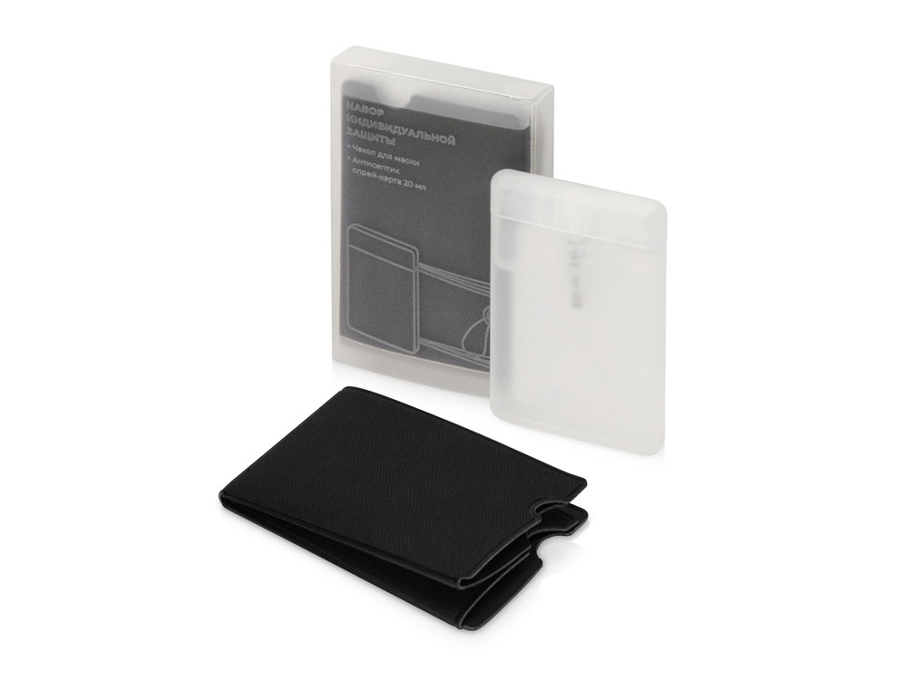 Самое необходимое всегда под рукой - в любом месте и при любой ситуации. Набор включает в себя компактный антисептик 20 мл в виде спрей-карты с ароматом грейпфрута и защитный чехол для гигиенической маски. Тиснение (Блинт) на данный товар осуществляется бесплатно. Оплачивается только настройка оборудования в размере 6200 рублей на весь тираж.
