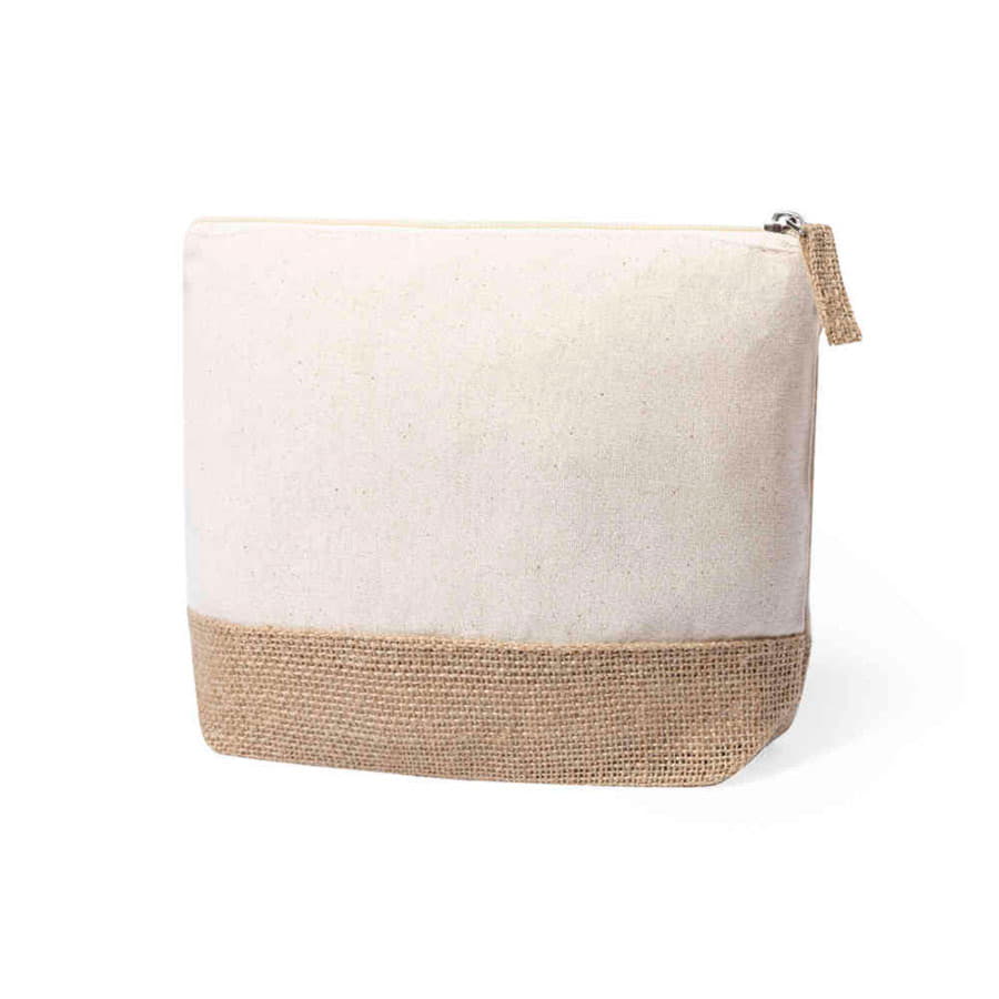 Косметичка из ламинированного джута и натурального хлопка. С застежкой-молнией и джутовым пулером.