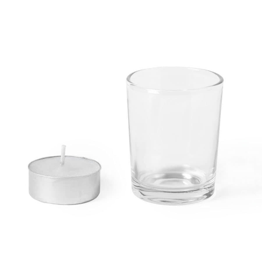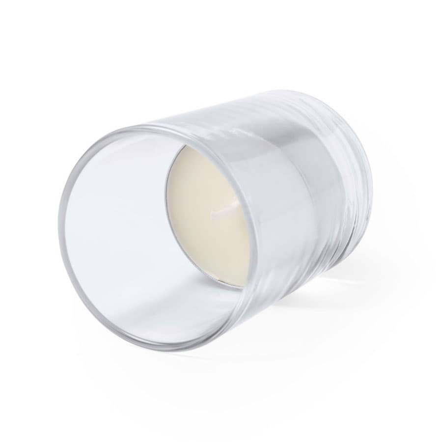 Свеча с ароматом ванили в стеклянном стаканчике.