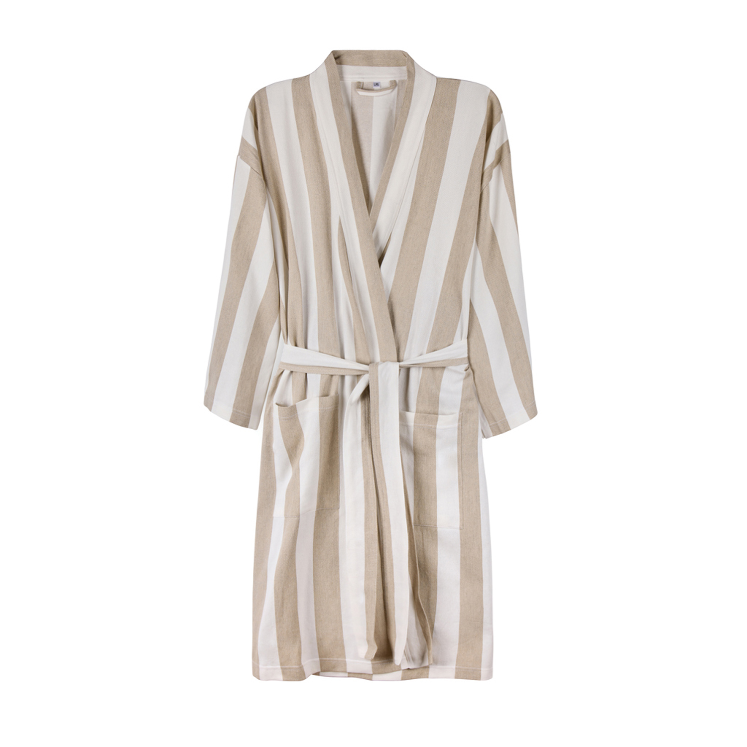 Стильный халат VINGA Ornos просто создан для пляжа и отдыха. Легкий и воздушный материал объединил в себе мягкость хлопка и простоту полиэстера — благодаря нему полотенце быстро сохнет. Изделие выполнено в классическом стиле с двухцветными полосками. Для максимального удобства предусмотрены карманы, рукава 3/4 и пояс на талии. Сертификация GRS (Global Recycled Standard) гарантирует, что вся цепочка поставок переработанных материалов проверена и подтверждена. Содержание вторсырья от общего веса изделия: 69% переработанный хлопок и 29% переработанный полиэстер. Плотность ткани: 200 г/м².