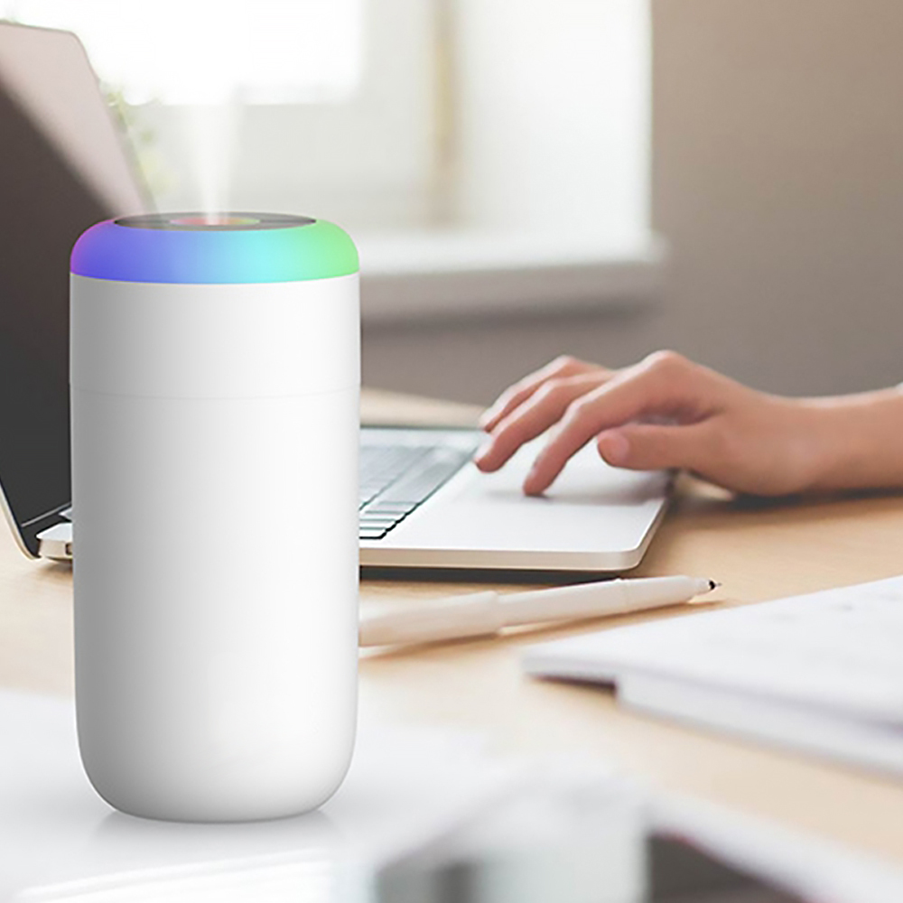 Светодиодный USB увлажнитель Огайо – ультразвуковой увлажнитель воздуха. 7-ми цветовая динамическая радужная подсветка. Добавьте в резервуар необходимое количество воды и несколько капель эфирного масла на водорастворимой основе, для наполнения пространства ароматом и свежестью. Подходит для использования дома и в автомобиле. Резервуар – 350 мл. Размер индивидуальной упаковки: 7,5*7,5*15,5см/176гр