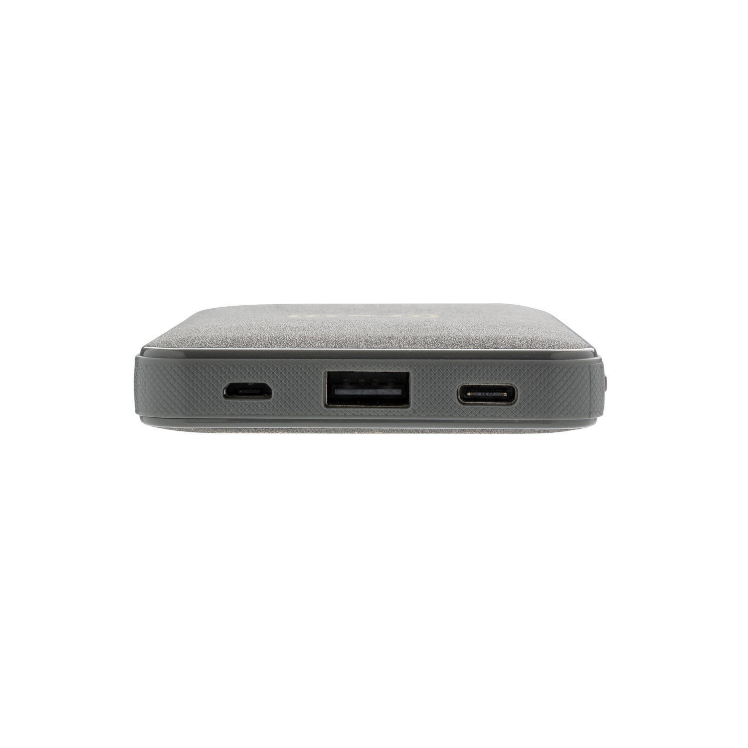 С этим стильным беспроводным внешним аккумулятором с покрытием из полиуретана ваш телефон никогда не разрядится. Энергии полностью заряженного аккумулятора класса А хватит, чтобы зарядить ваш смартфон до четырех раз, используя беспроводную зарядку. Если ваш телефон не поддерживает функцию беспроводной зарядки, то вы сможете подзарядить его через USB или Type-C порт. Напряжение на входе Type-C: 5V/3A; micro USB: 5V/2A. Напряжение на выходе Type-C: 5V/3A, USB: 5V/2A. Беспроводное напряжение на выходе: 5V/1A 5W