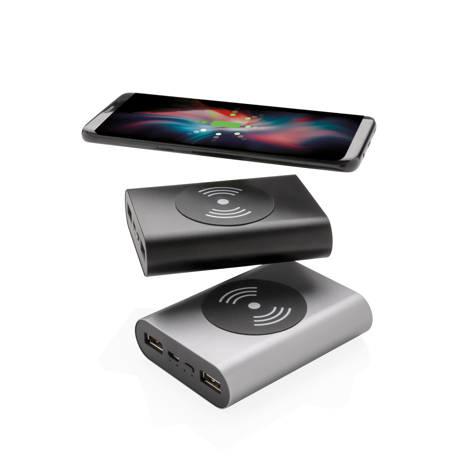 Внешний аккумулятор емкостью 5 000 мАч выполнен в стильном и надежном алюминиевом корпусе, благодаря своему уникальному дизайну, с легкостью поместится в ваш карман. Беспроводную зарядку на 5W смогут оценить все пользователи моделей нового поколения Android, iPhone 8 и выше. В устройстве есть два порта USB, что позволяет заряжать гаджеты при помощи кабеля. Энергии литий-полимерной батареи хватит, чтобы зарядить ваш смартфон до трех раз. Удобные световые индикаторы отображают уровень заряда, напоминая о необходимости подзарядить устройство. Напряжение на входе составляет 5В / 2,1A. Micro-USB: 5В / 1,5А. Беспроводной выход: 5W 5В / 1A.