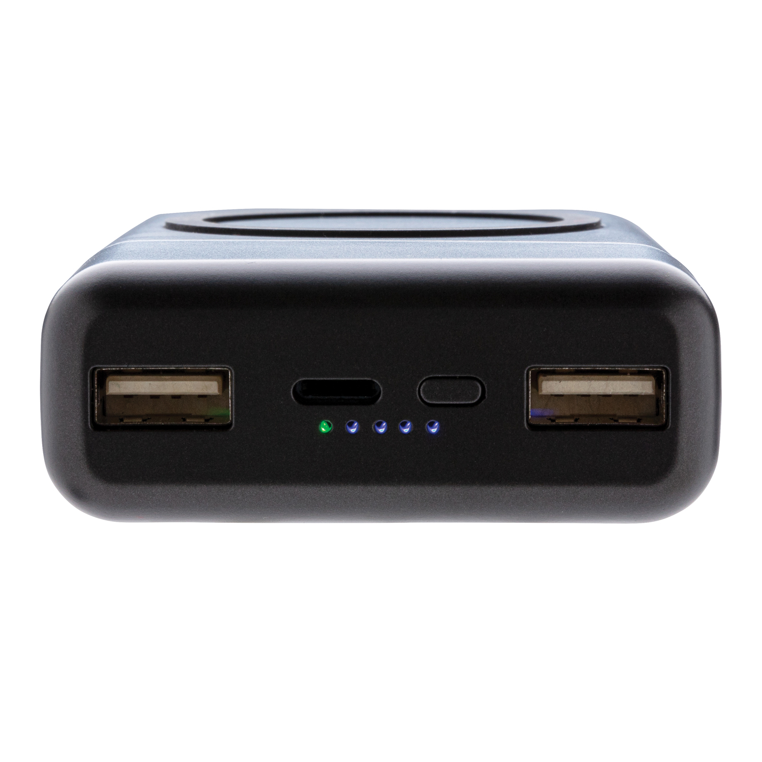 В этом внешнем аккумуляторе есть все, что вам нужно. Внешний аккумулятор карманного размера можно заряжать без проводов, просто разместив его обратной стороной на док-станции с функцией беспроводной зарядки. С другой стороны, лицевую часть можно использовать для беспроводной зарядки (5W) ваших мобильных устройств, просто расположите ваш девайс на поверхность зарядки с силиконовым кольцом. Функция беспроводной зарядки подходит смартфонам на Android последнего поколения, а также iPhone 8 и выше. Для зарядки при помощи кабеля предусмотрены 2 USB порта и 3 разъема: Micro/Type C вход/ Apple Lightning. Устройство оснащено долговечным литий-полимерным аккумулятором 10000 мАч высокой плотности класса A. 2 USB порта: 5V/2A. Micro/Type C Вход: 5V/2A; Lightning Вход: 5V/1A. Беспроводной выход 5V/1A.