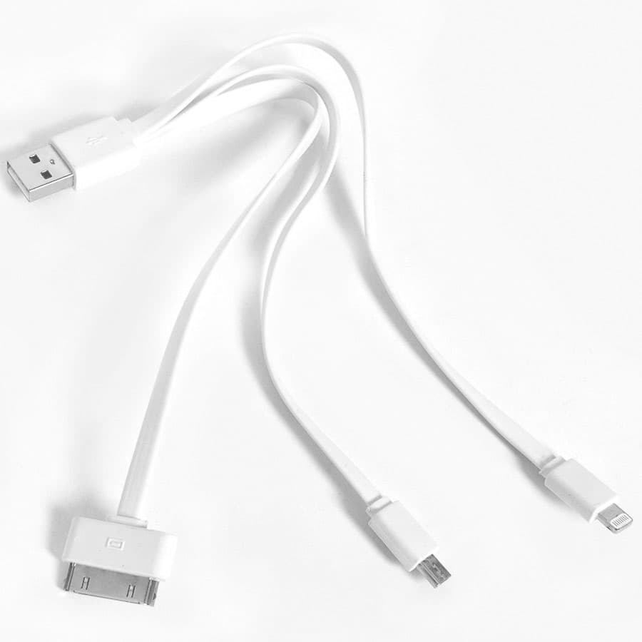 2.кабель с разъемами для зарядки iPhone 4/4S, 5/5S/5C,6, Micro USB.