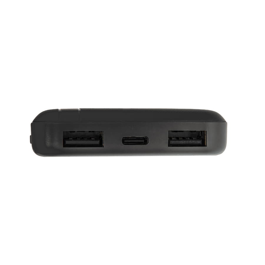 Внешний аккумулятор имеет пластиковый матовый корпус. Пауэрбанк заряжается через универсальный порт Type-C и отдает энергию через два классических порта USB. Благодаря встроенному в корпус индикатору уровня заряда батареи, удобно следить за расходом батареи.
