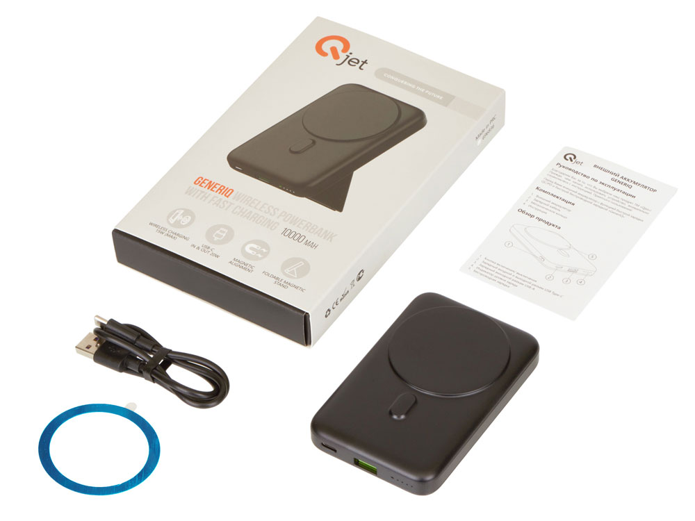 Продвинутый повербанк с уникальным стилем. Ёмкости 10000 мАч хватает в среднем на 2,5-3 зарядки смартфона. GenerIQ поддерживает быструю беспроводную зарядку 15 Вт с авто-включением: просто поднесите смартфон к повербанку - он мгновенно примагнитится и начнется зарядка*. Беспроводная зарядка будет работать и во время зарядки самого повербанка. Металлическое кольцо для смартфонов на Android в комплекте.