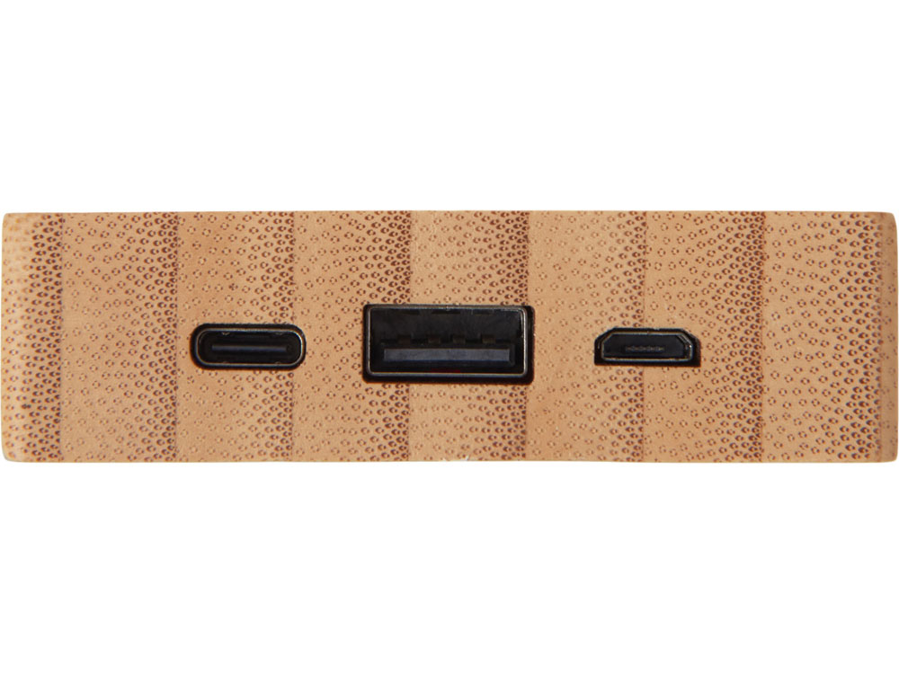 Внешний аккумулятор ёмкостью 10 000 мАч, созданный для тех, кто ценит стиль, функциональность и заботу о природе. Корпус устройства изготовлен из натурального бамбука и переработанного ABS-пластика — это не только придаёт ему уникальный эстетичный вид, но и снижает экологический след. С одной стороны — солнечная панель, позволяющая подзаряжать устройство от солнца, с другой — панель с возможностью нанесения светящегося логотипа компании или бренда. Идеальное решение для путешественников, офисных сотрудников и корпоративных подарков — технологично, стильно и ответственно.