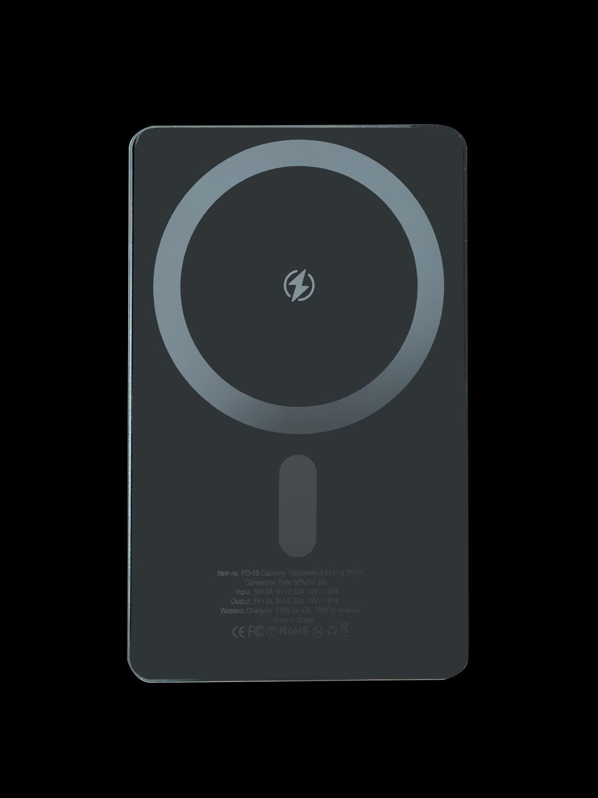 Ёмкость: 10000mAh; Tupe C вход: 5V=2A/ 9V=2A; Type C выход: 5V=2,4A, 9V=2.22A, 12V/1.67A, 20W (Max). Беспроводная зарядка: 15W, 10W, 7,5W, 5W. Размер: 106x66x139 мм. Материал: Алюминий, ABS.