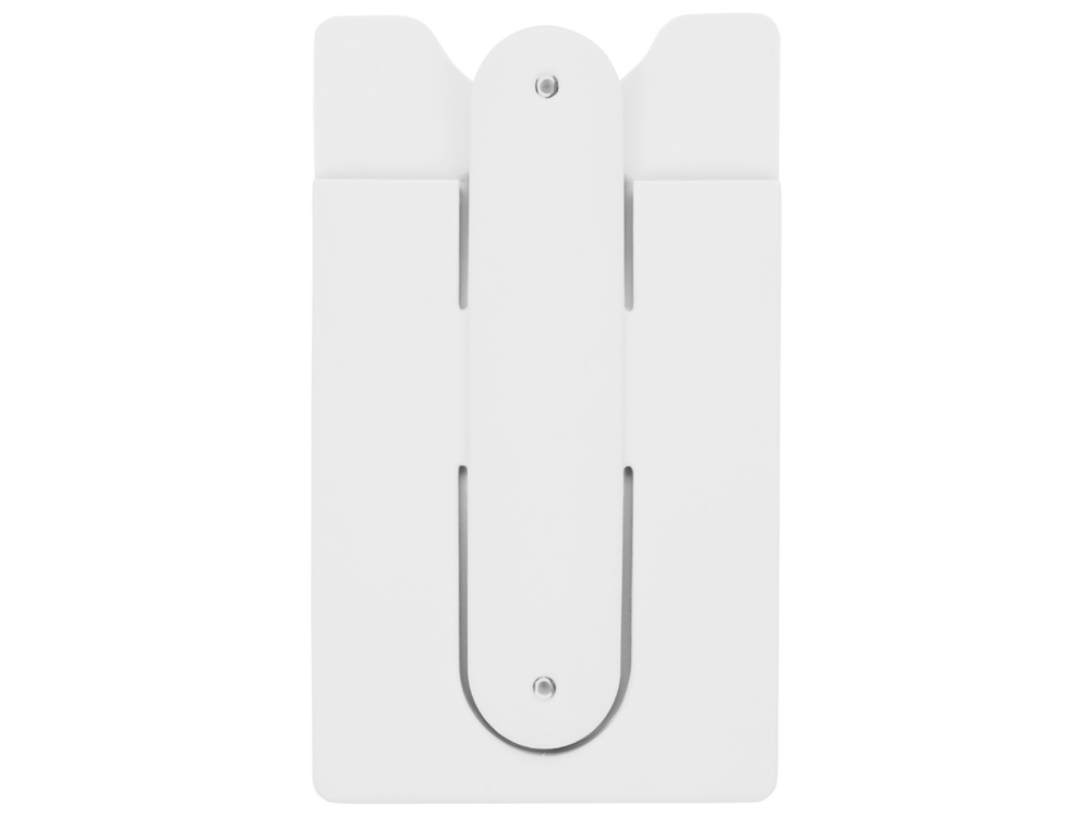 Чехол для визиток и кредитных карт с функцией подставки. За счет клейкой основы прикрепляется к обратной стороне телефона или любой другой плоской поверхности.