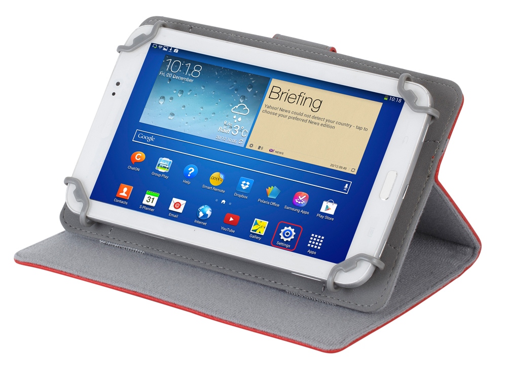 • С помощью двух скрытых липучек планшет можно фиксировать под разными углами в режиме просмотра. В закрытом состоянии фиксируется магнитной застежкой. В открытом - застежка крепится к обратной стороне, не мешая работе с планшетом.