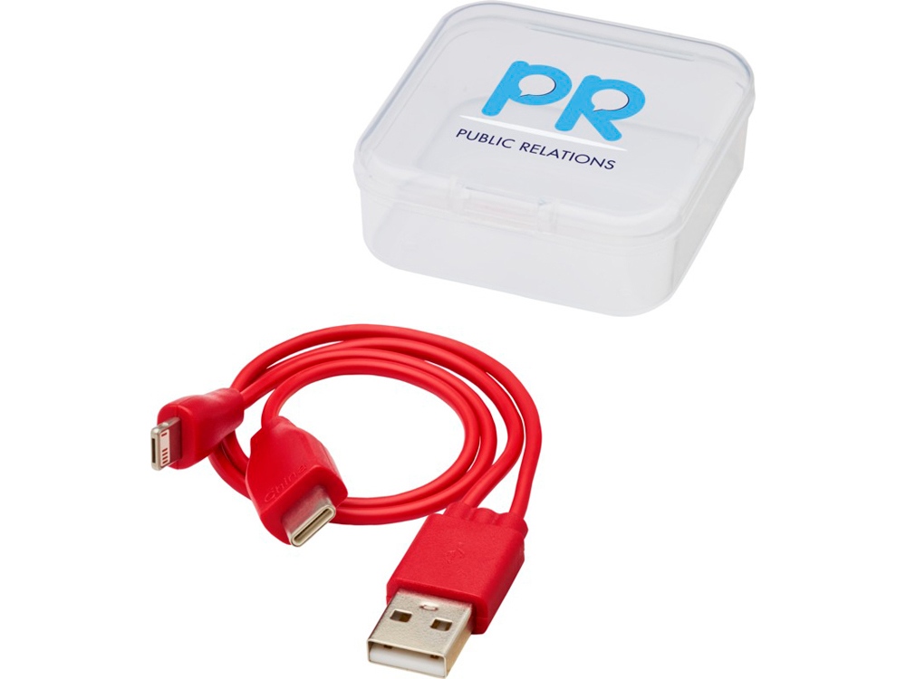 Зарядный кабель 3-в-1 оснащен разъемом USB типа С и двойным разъемом 2-в-1, подходящим для устройств как на Apple® iOS, так и на Android. Micro USB и разъем 2-в-1 до 2 А. Разъем Type-C до 3 А. Поставляется в защитном футляре.