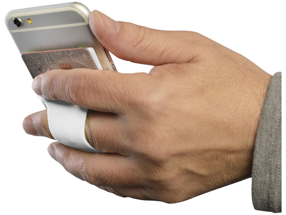 Силиконовый картхолдер для телефона с отверстием для пальца. Картхолдер можно легко прикрепить практически ко всем смартфонам с плоской панелью сзади при помощи липкой ленты. В него можно поместить кредитную карту/ идентификационную карту/ карту-ключ от номера / 5 визиток или банкноты. Отверстие для пальца для более удобного удержания телефона.