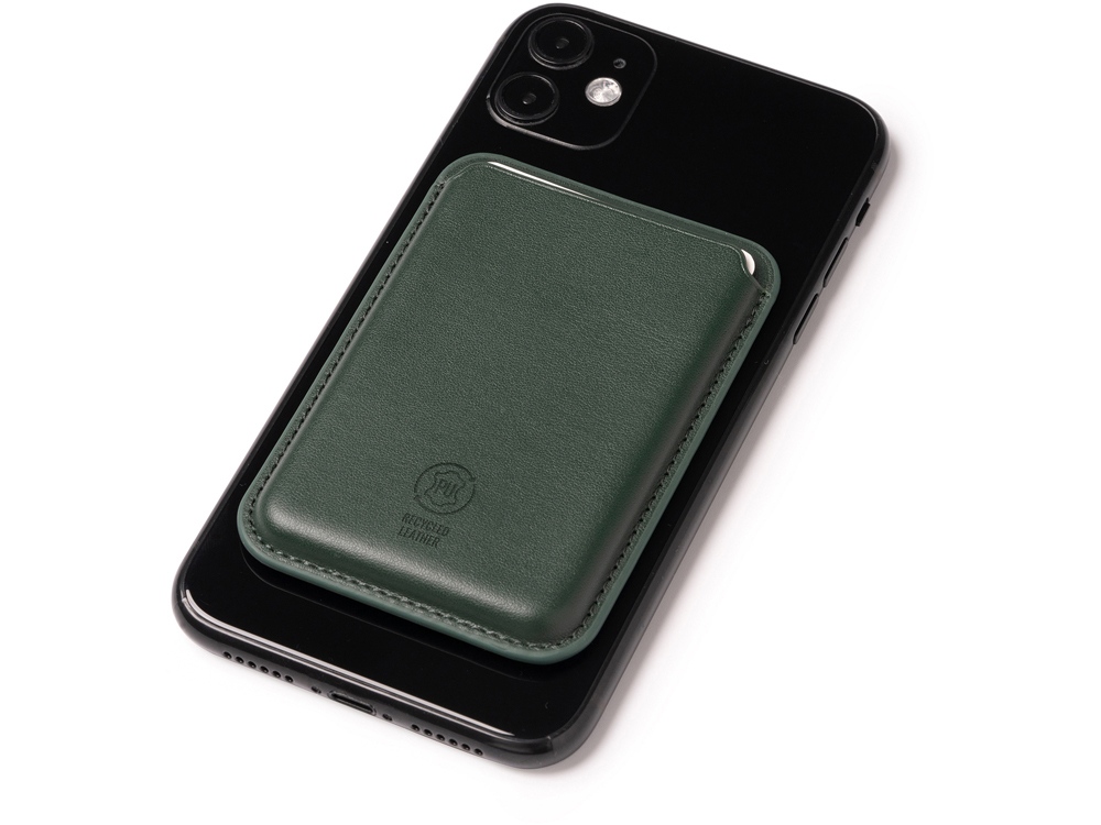 Картхолдер вмещает в себя 1-2 карты. На лицевой стороне изображен знак переработанного полиуретана, из которого сделан картхолдер, а с внутренней стороны имеется отверстие для быстрого доступа к картам.